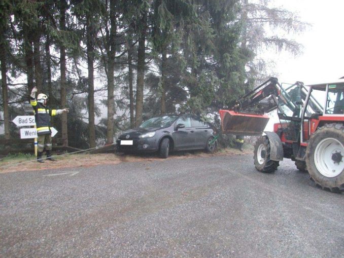 Aufgrund von gefrierendem Nebel kam der Fahrzeuglenker mit seinem Pkw auf der Fahrt von Hochneukirchen nach Bad Schönau ins Schleudern, touchierte einen Baum und blieb seitlich am Abhang stehen. Zur Bergung des Fahrzeuges wurde es mittels Traktor im Heckbereich gegen verrutschen gesichert und mit der Seilwinde im geraden Zug wieder auf die Fahrbahn gezogen. Anschließend wurde das Fahrzeug gesichert abgestellt. Die Freiwillige Feuerwehr Bad Schönau stand für eine Stunde mit 12 Mitgliedern und zwei Fahrzeugen im Einsatz.