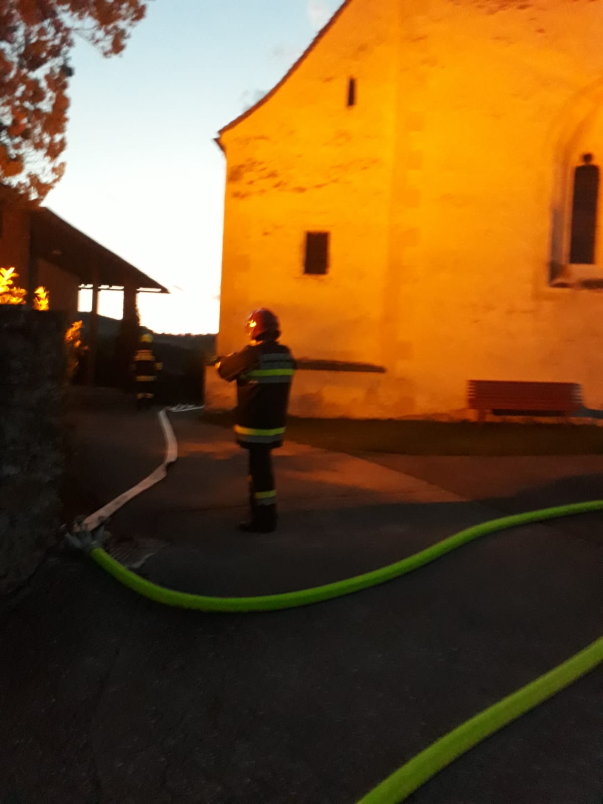 Am Donnerstag, den 19. September 2019, wurde erstmalig eine Übung bei unserer Wehrkirche durchgeführt. Übungsannahme war ein Brand des Dachstuhles. Zum einen sollten Maßnahmen erkannt werden, die einen effizienten Löschangriff zulassen, um das Gebäude mit geringen Schäden zu erhalten. Zum anderen war auch das Schützen der Nebengebäude ein weiteres Einsatzszenario.