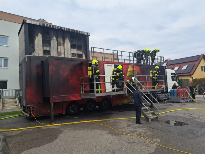 Unter Anleitung erfahrener Ausbilder wurden verschiedene Szenarien durchgespielt: Innenangriffe unter Atemschutz, Sichtbehinderung durch Rauchentwicklung, Temperaturbelastung und die gezielte Rettung von simulierten Personen. Die Teilnehmenden mussten unter Atemschutz arbeiten, Aufgaben wie die Schlauchführung, Ausrüstungstransport und das richtige Vorgehen bei einer Rauchgaserkennung effizient umsetzen.