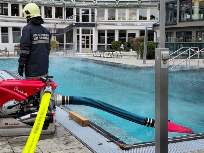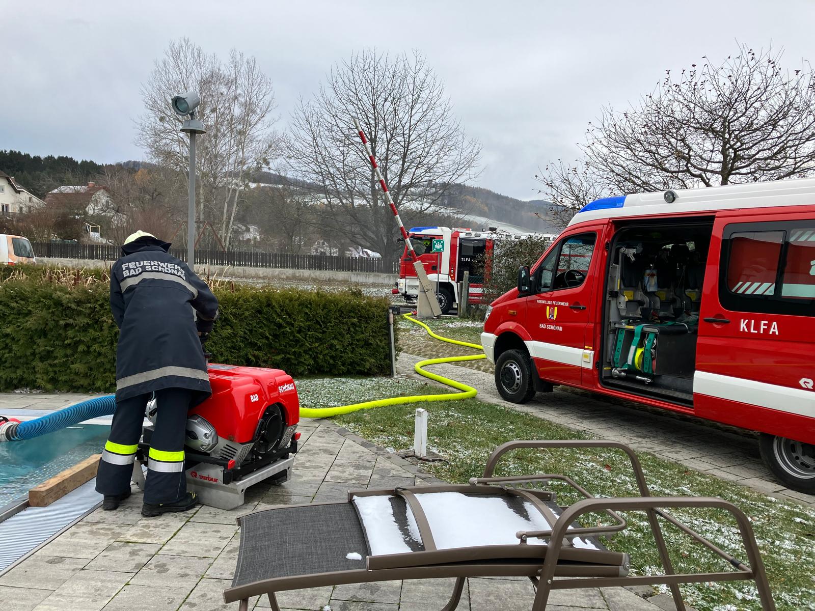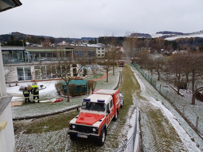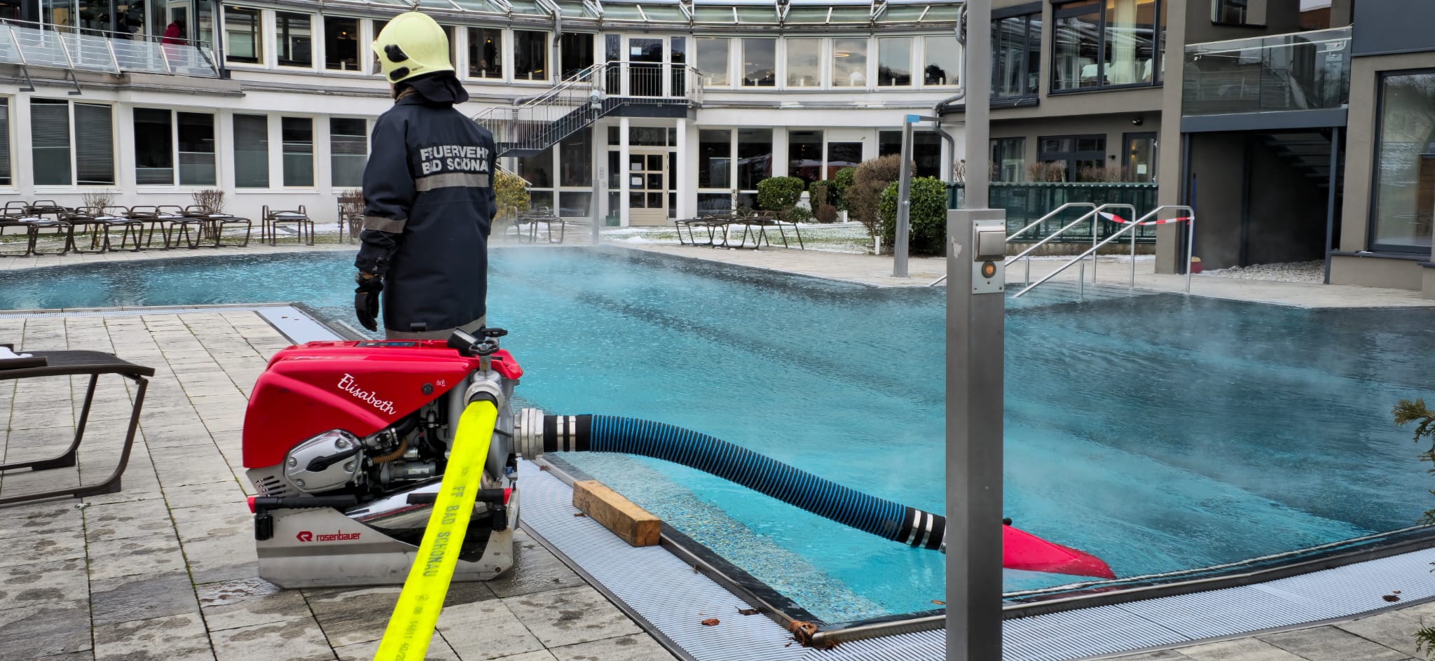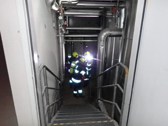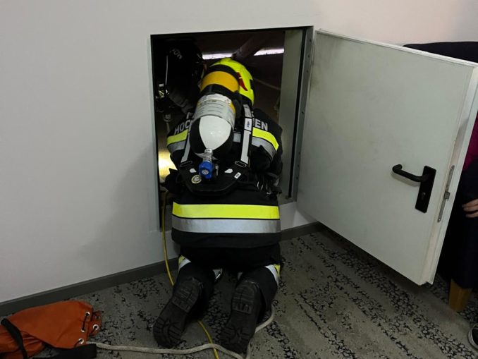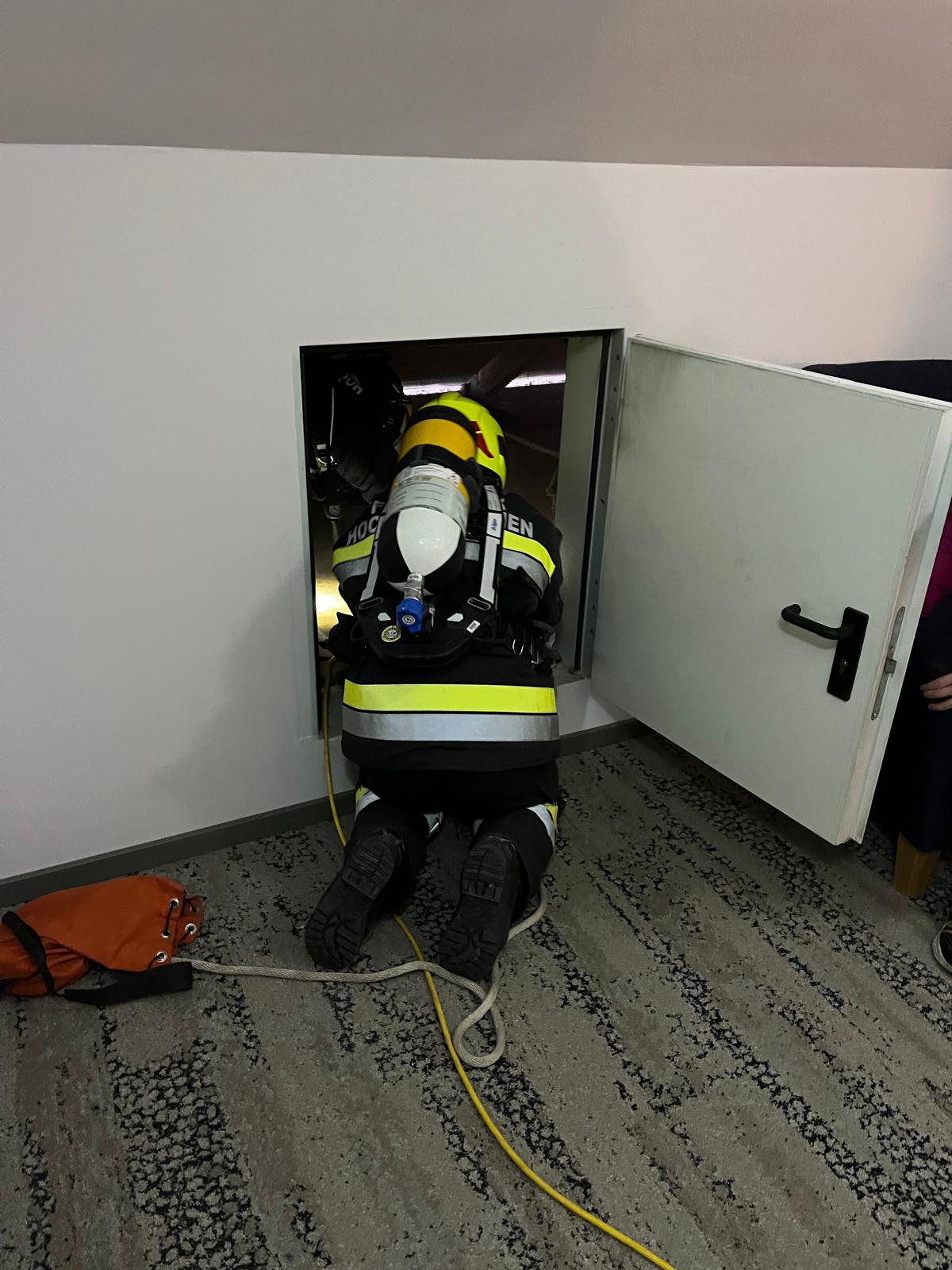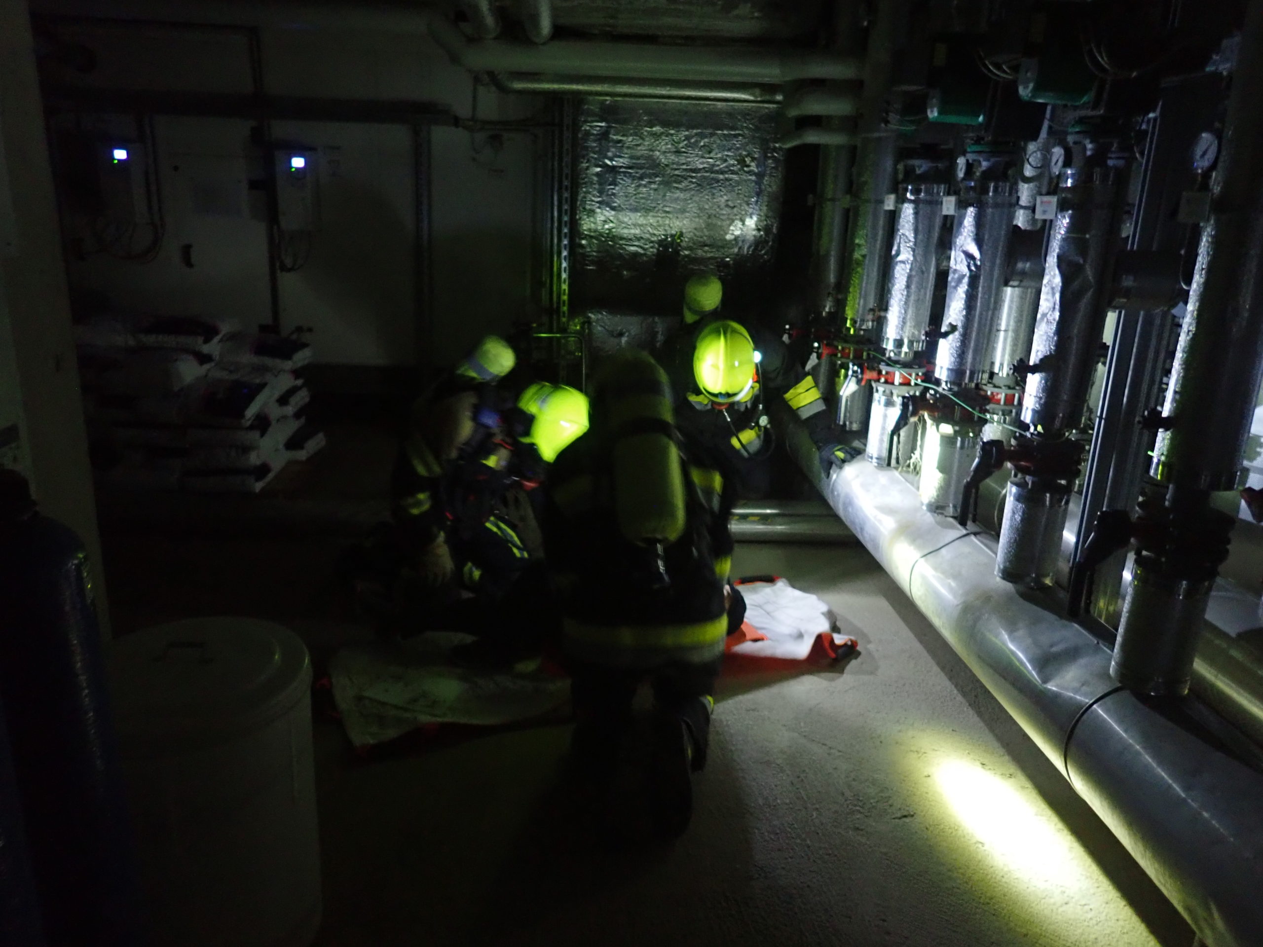 Ein zusätzlicher Schwerpunkt der Übung lag im Bereich der Gebäudetechnik: Im Technikkeller waren laut Übungsannahme Schadstoffe der Schwimmbadtechnik ausgetreten, zugleich wurden dort Personen vermisst. Die Feuerwehr Kirchschlag rückte mit einem Gefahrenstofftrupp an und durchsuchte unter Vollschutz den betroffenen Bereich. Dabei wurden die vermissten Personen gerettet und die austretenden Stoffe fachgerecht gesichert.