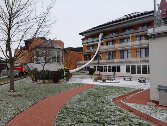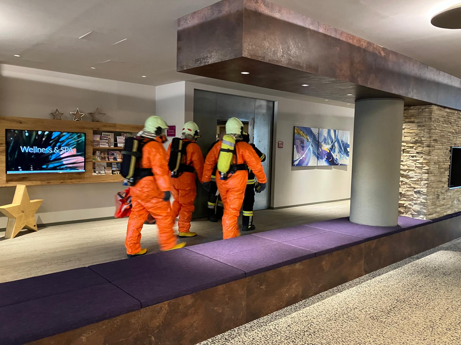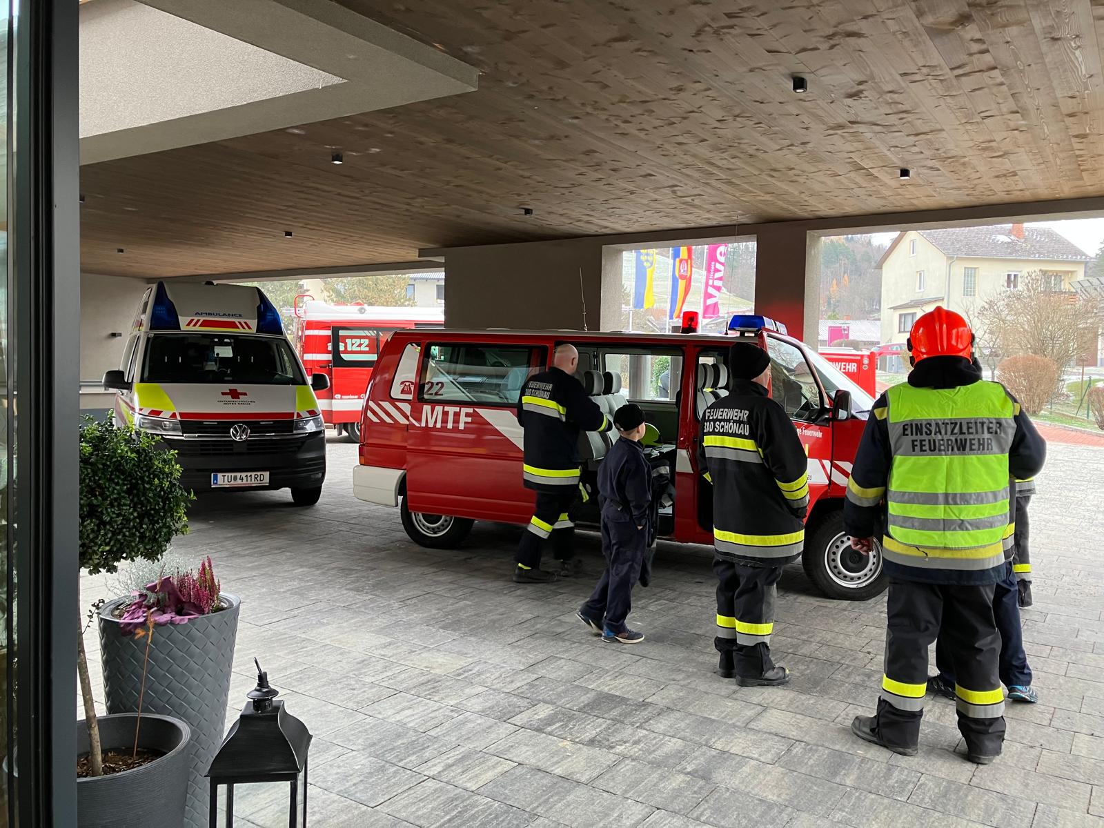 Bad Schönau – Ein realitätsnahes und forderndes Übungsszenario erwartete am Samstag den 22.11.2025 die Einsatzkräfte im Vivea Hotel „Haus zur Quelle“. Im Rahmen einer umfassenden Unterabschnittsübung wurde ein Brand im Dachgeschoss des dreistöckigen Gebäudes angenommen. Dichter Rauch machte den oberen Gebäudeteil unzugänglich, mehrere Personen galten als vermisst.